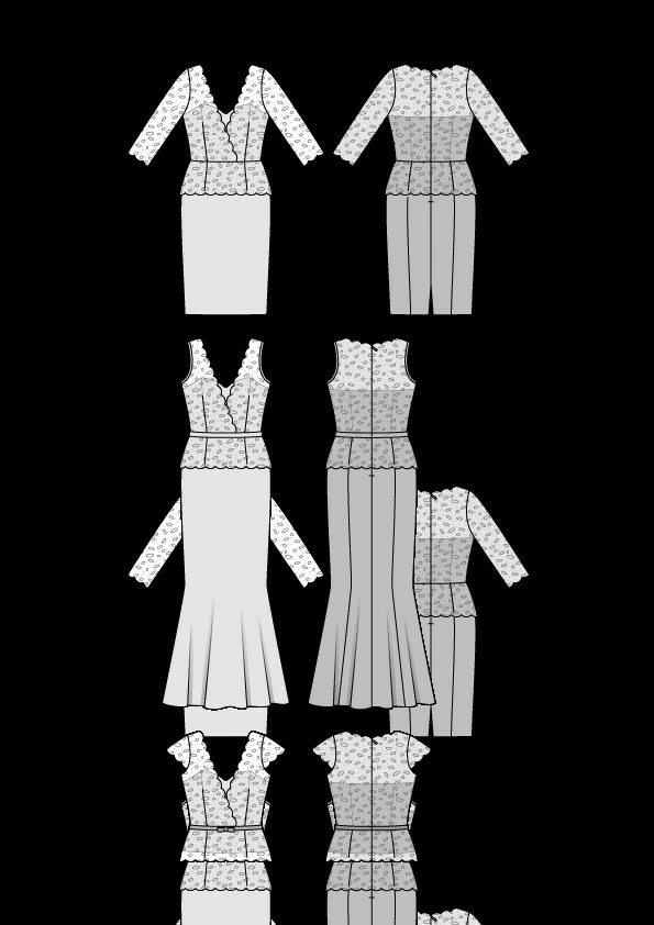 Stoffempfehlung: Spitzenstoff mit beidseitiger Bogenkante und Seide, Satin, Taft