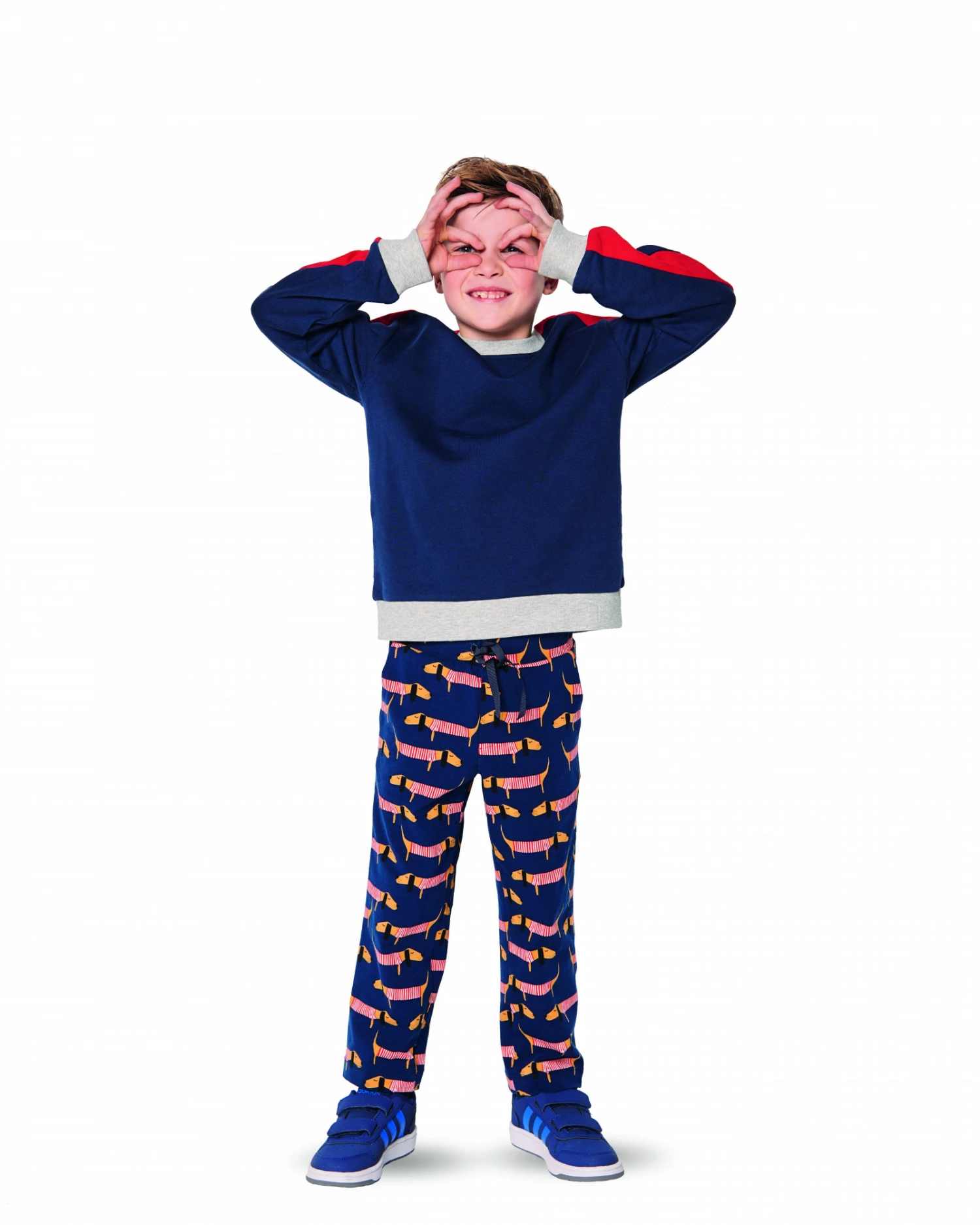 Schöne Hosen für kleine Jungs. Variante A mit lustigem Print und in langer Variante, B in kurz und in bunt. Diese Hosen werden super easy genäht und bringen Freude in den Kleiderschrank!
