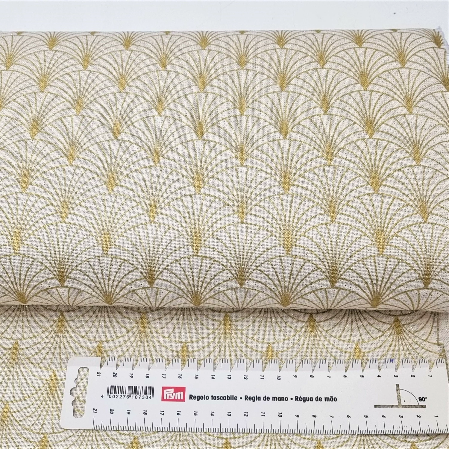 200Gr.m2, 140 cm Breit, 85% Baumwolle, 10% Poliester, 5 % metallise